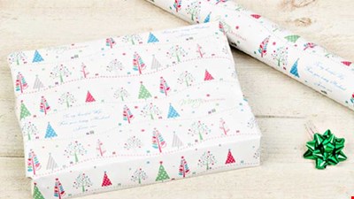This wrapping paper, featuring a very wintery, festive scene measures in at 50 x 70cm, comes with matching tags and can be personalised with up to 75 letters.